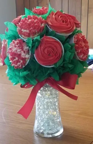 The inventive rose cupcake bouquet from Stresses Cafe and Bakery won second place. Check back later for a spotlight on their bakery.
