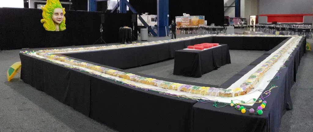 “This year we completed the largest King Cake that we have ever done! It measured in at over 120 feet in length. It served 1,500 people in Houston, Texas on Mardi Gras Day.”