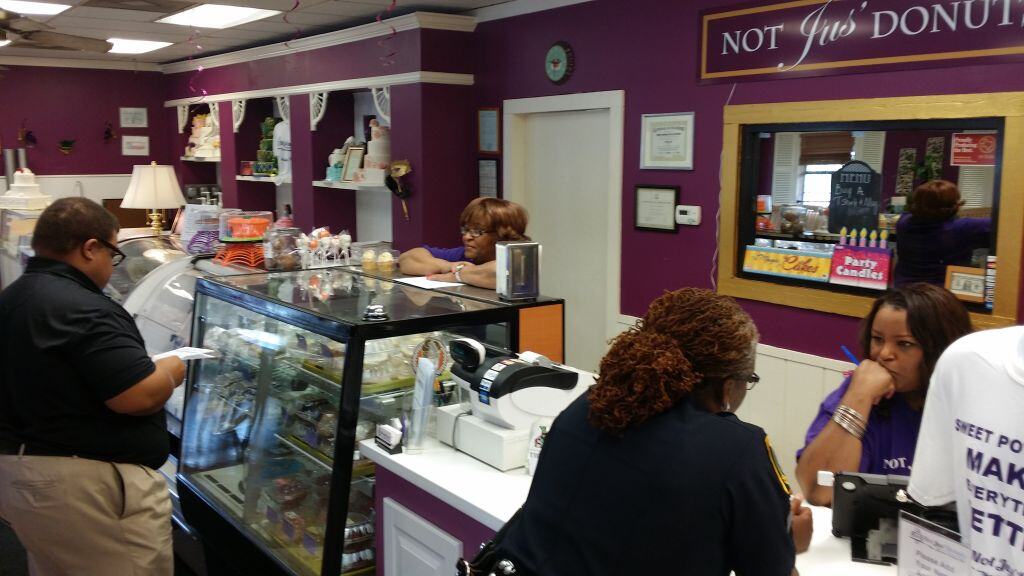 Not Jus’ Donuts Bakery Cakes & More is a bakery and cafe owned and operated by Ms. Myrtle and her two daughters, Andrea and Rosharon. The Not Jus’ Donuts team comes from a long line of bakers and cooks, which inspired them to start their own retail bakery back in 2000.